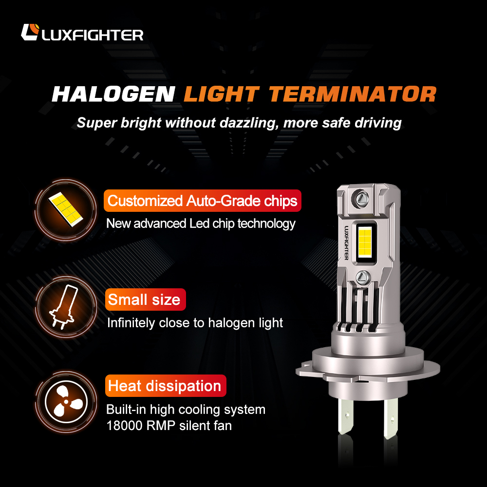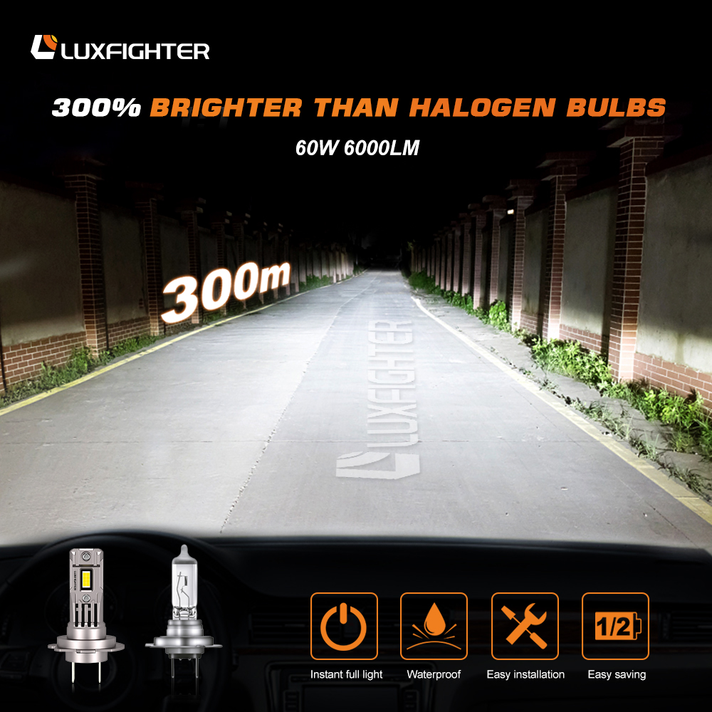 Luxfighter Q26 H7 Đèn pha LED Bóng đèn 60W 6000LM 1: 1 đến ánh sáng halogen nhưng đạt tới 60W cũng như độ sáng cao. Phương pháp cài đặt tương tự để ánh sáng halogen dễ dàng và thuận tiện để thay thế nó một mình. Luxfighter là thương hiệu hàng đầu của chúng tôi cho thị trường chiếu sáng trang bị ô tô, chuyên về giải pháp Plug & Play trực tiếp để cung cấp trải nghiệm tốt hơn cho người tiêu dùng khi lái xe.