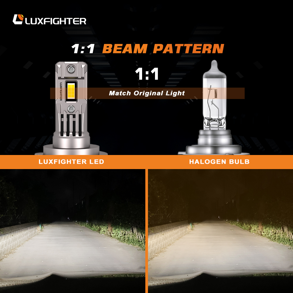 3. Mô hình chùm tia hoàn hảo: Bóng đèn pha Luxfighter sử dụng thiết kế chùm tia halogen 1: 1 và tấm đồng chip cực mỏng, đảm bảo ánh sáng đồng đều giống như bóng đèn halogen. Ánh sáng 360 ° mà không có bất kỳ điểm tối hoặc khu vực bóng tối nào, luôn sẵn sàng chuyển đổi giữa chùm sáng cao và thấp, không có ánh sáng chói đối với giao thông sắp tới.