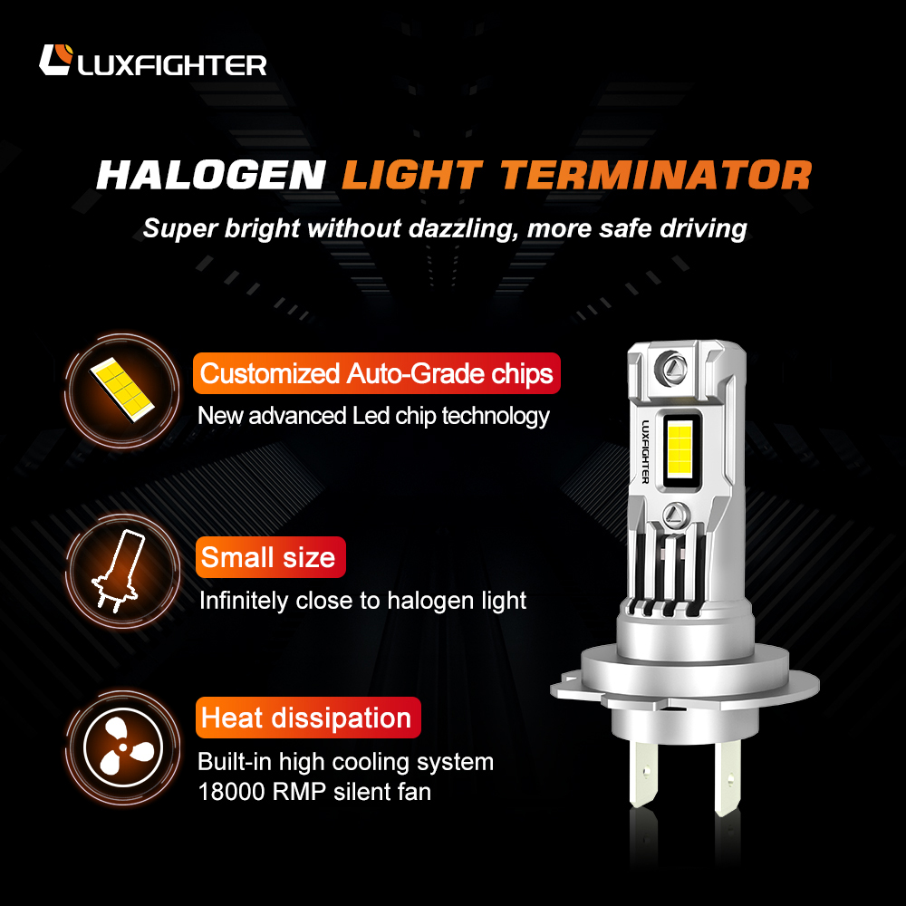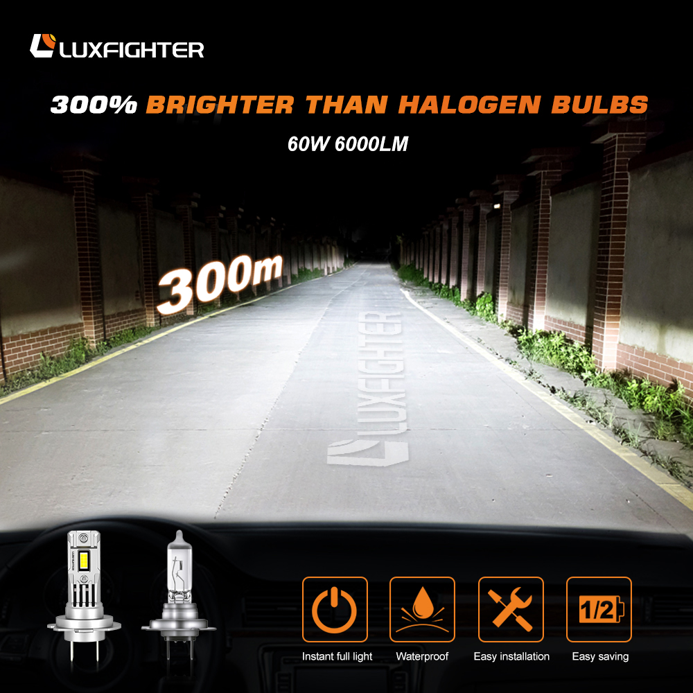 Luxfighter H7 LED đèn pha Bóng đèn 60W 6000LM LED ô tô Auto Auto Đèn pha đạt được kích thước 1: 1 với đèn halogen, quạt tích hợp để tản nhiệt nhanh, mô hình chùm tia hoàn hảo, không có ngọn lửa hoặc ánh sáng chói từ giao thông đối diện. Kích thước nhỏ, tiết kiệm không gian, dễ cài đặt, cắm và chơi. Thiết kế đơn giản, cũng có thể hỗ trợ tùy chỉnh riêng các sản phẩm thương hiệu của riêng bạn.