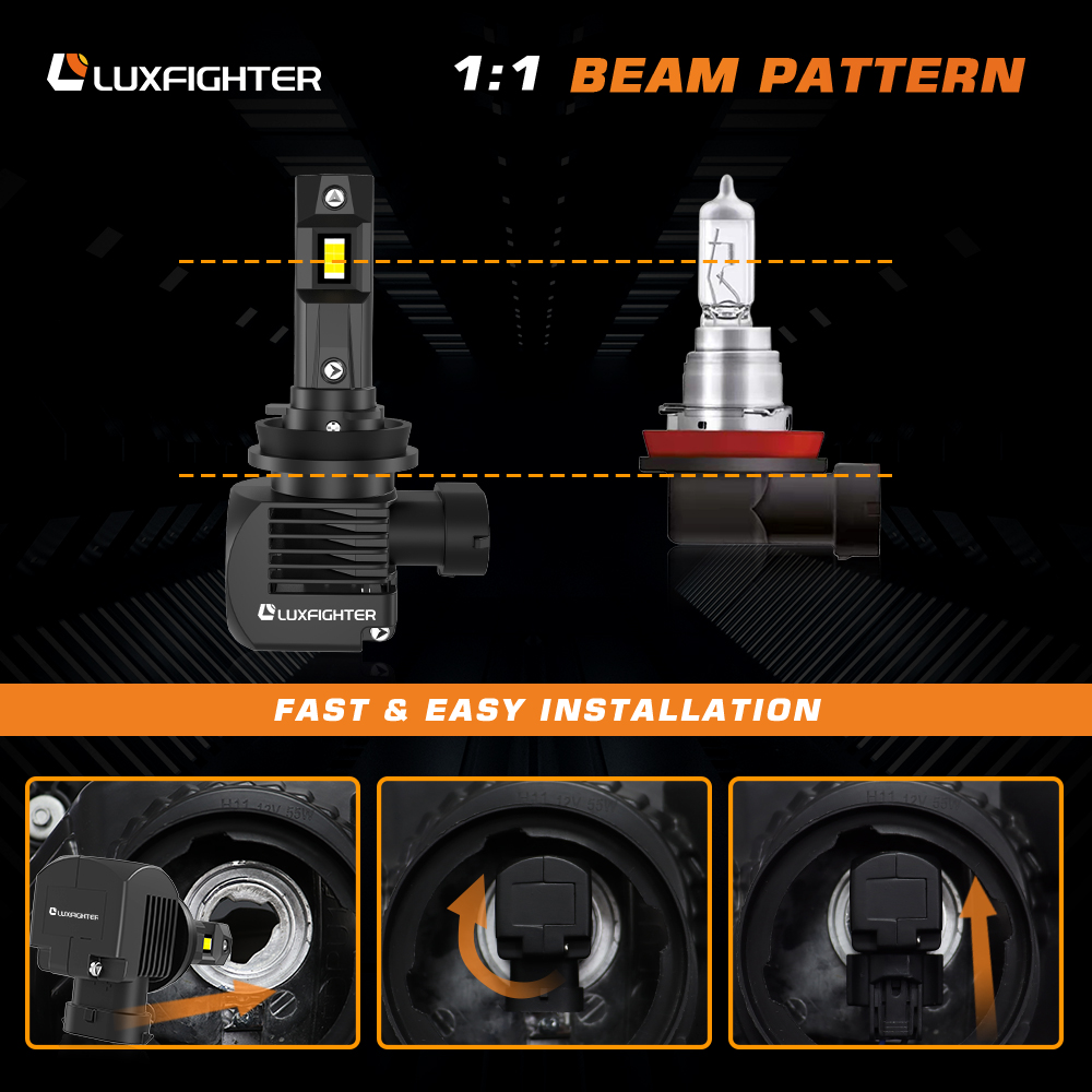 Bóng đèn đèn pha LED 100W 8000LM Super Bright LED Breation Bộ chuyển đổi có kích thước 1: 1 như bóng đèn gốc có thể được cài đặt hoàn hảo vào xe của bạn mà không cần công cụ và sửa đổi trong vòng 5 phút. Sau hơn 15 năm kinh nghiệm phát triển và tinh chỉnh các thiết kế của chúng tôi, chúng tôi biết rằng một bóng đèn di động, dễ cài đặt là xu hướng mới của đèn pha LED. Luxfighter cung cấp toàn bộ loạt đèn pha LED phích cắm & chơi cho khách hàng với Power Power từ 15W đến 65W.